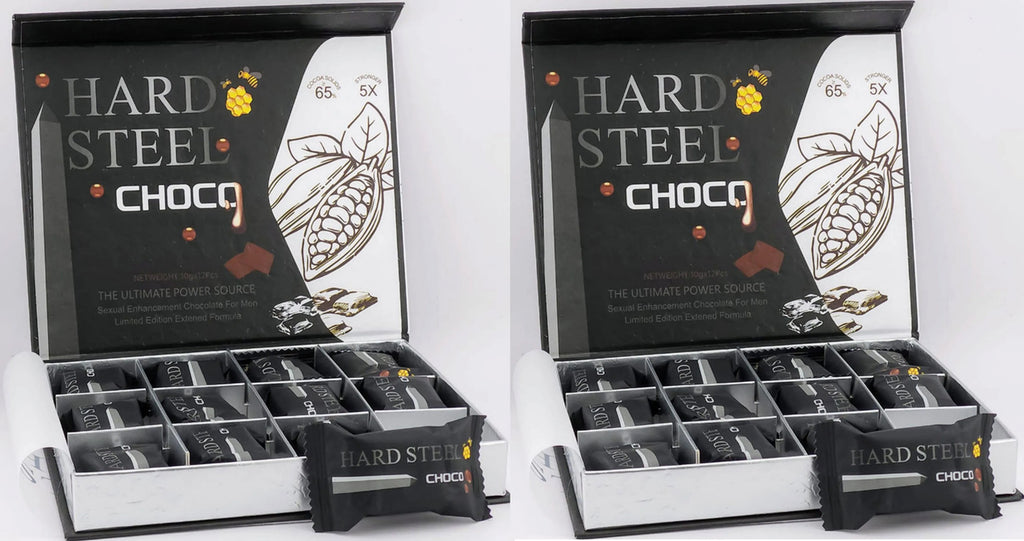 Hard Steel Chocolate was created with one goal in mind, to ensure that you always reach peak erection, and sustain that same erection during sexual intercourse. We used an all-natural sexual enhancement ingredient as a premier based to ensure the effectives for Hard Steel Choco. What is more? in each botanical, we were able to fuse the formulation with the same level of consistency as our 2oz liquid shots, and which they are considered complementary to our chocolates.